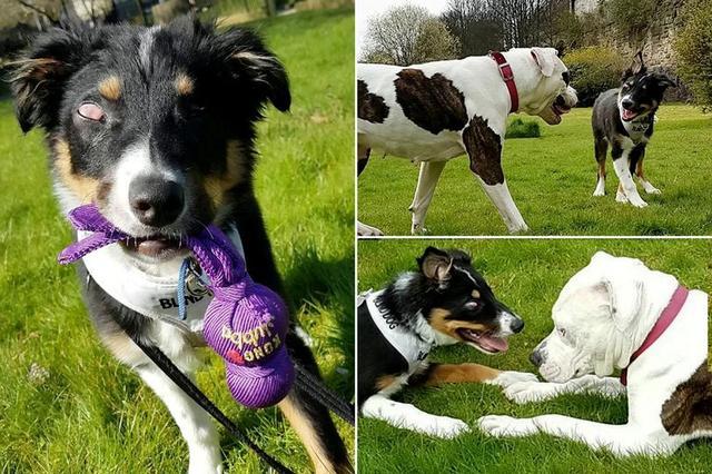 英国边牧犬失明 牛头犬来给其当导盲犬 俩狗形影不离场面太有爱 腾讯新闻